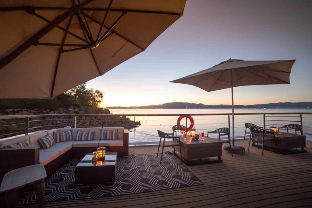 L’avion se pose à l’aéroport de Kariba, ville de près de 30 000 habitants située à l’extrémité Est du lac. Après les formalités d’entrée au Zimbabwe, nous sommes accueillis par notre guide qui nous escorte vers l’embarcadère où se situe notre cocon pour les prochains jours, l’African Dream. Construit en 2018 à Harare, capitale du Zimbabwe, il fut acheminé par la route en pièces détachées puis assemblé à Kariba, une performance technique qui en fait un navire unique. Après les consignes de sécurité indispensables avant la levée des amarres, nous prenons le temps de prendre nos marques dans le navire, et déjà de profiter des ponts extérieurs et pour certains du jaccuzi. Le soleil prend rapidement sa couleur rose typique des soirées africaines, se reflétant dans les eaux calmes du lac.