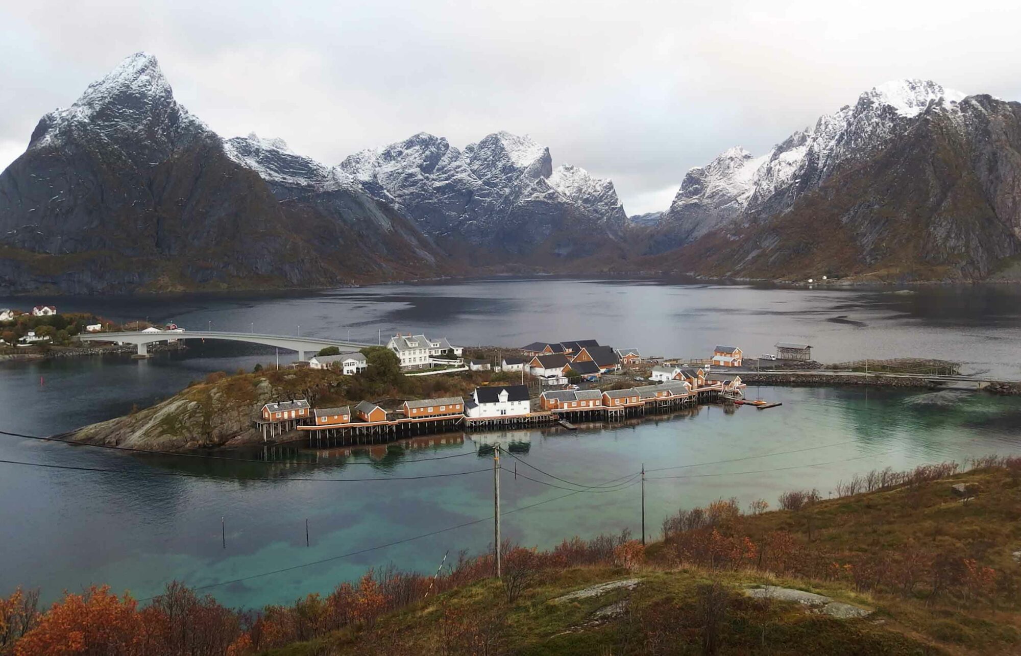 Ce matin, au réveil, nous découvrons la baie de Nusfjord où l’Explorer est arrivé de nuit hier soir. Tout autour de nous, des sommets enneigés dominent une forêt boréale aux couleurs de l’automne. Sur la côte, les traditionnelles maisons rouges des pêcheurs finissent de donner au décor son air de carte postale caractéristique des Lofoten.