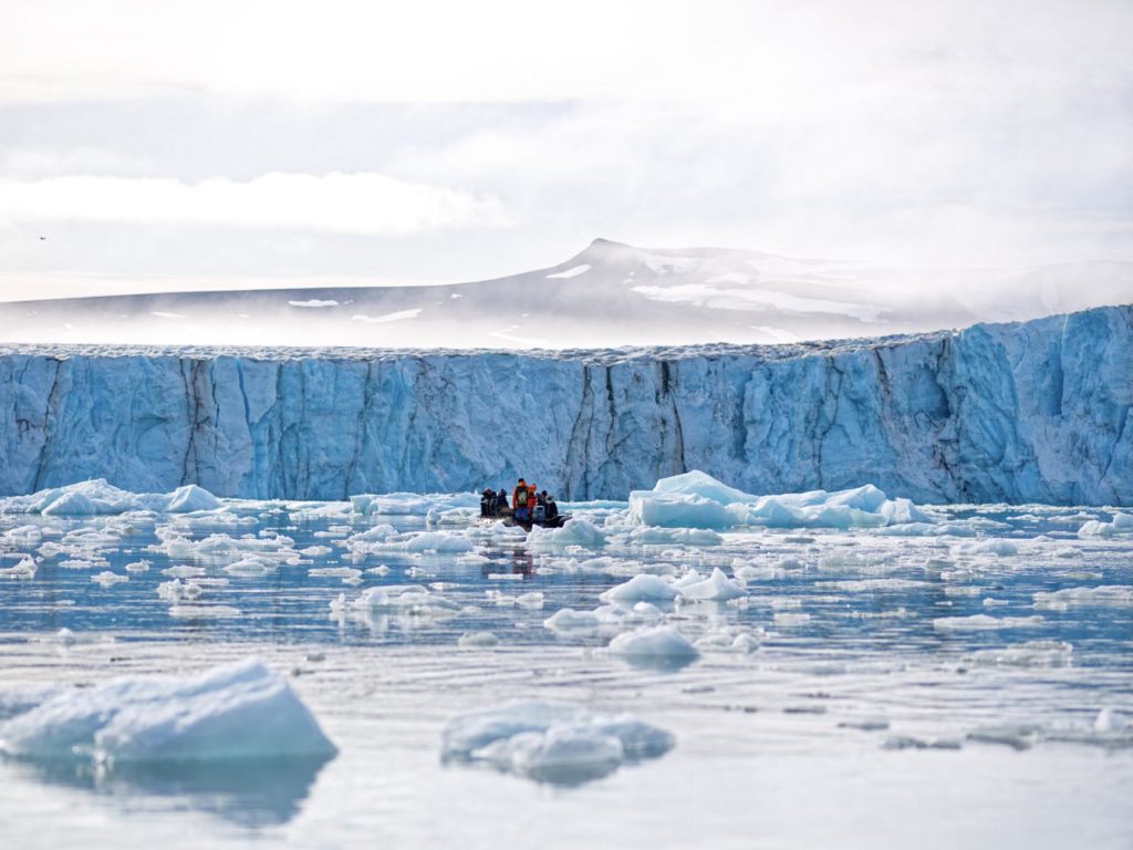 Nous naviguons seuls entre des icebergs aux couleurs bleutées, turquoise transparent, avec tout le fond l’immense glacier Negribreen. Je pourrais me sentir blasée après avoir vu les fjords d’Illulissat, mais il n’en est rien. Le Svalbard se révèle étonnant avec des paysages si majestueux. Je me sens petite face à cette nature, sereine et tellement chanceuse.