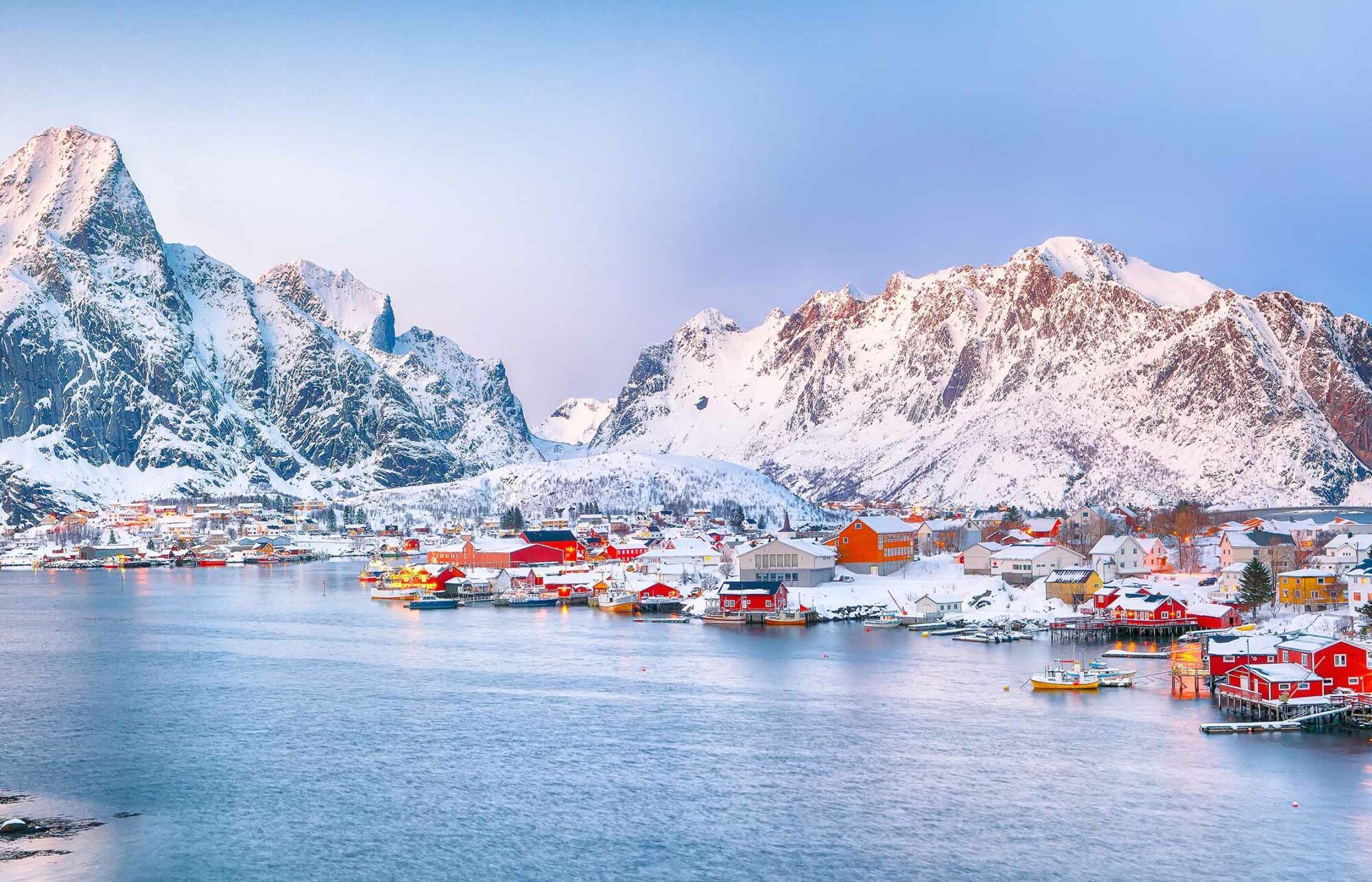 Notre aventure commence par l’arrivée à Reine, un village au cœur des paysages les plus spectaculaires des Lofoten. Reine, situé dans le sud des îles Lofoten, est célèbre pour sa beauté naturelle incomparable, avec ses montagnes imposantes qui se dressent au-dessus des fjords et ses eaux turquoise cristallines. Ce village pittoresque est aussi réputé pour ses rorbuer, ces cabanes traditionnelles de pêcheurs, peintes en jaune, orange et rouge, qui sont devenues un symbole des paysages typiques de la région.