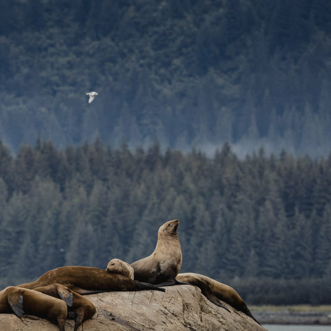 Riche de ses eaux, l’océan Pacifique baigne toute la côte Ouest, donnant naissance à des forêts denses accrochées aux pentes vertigineuses des montagnes Rocheuses qui plongent dans la mer. Ces hauts sommets englacés alimentent de nombreux glaciers, dont les icebergs ornent des fjords abritant une faune exceptionnelle : loutres de mer, phoques et otaries, aigles pêcheurs, baleines, grizzlys et mouflons… Ce sera là le cœur de notre croisière.