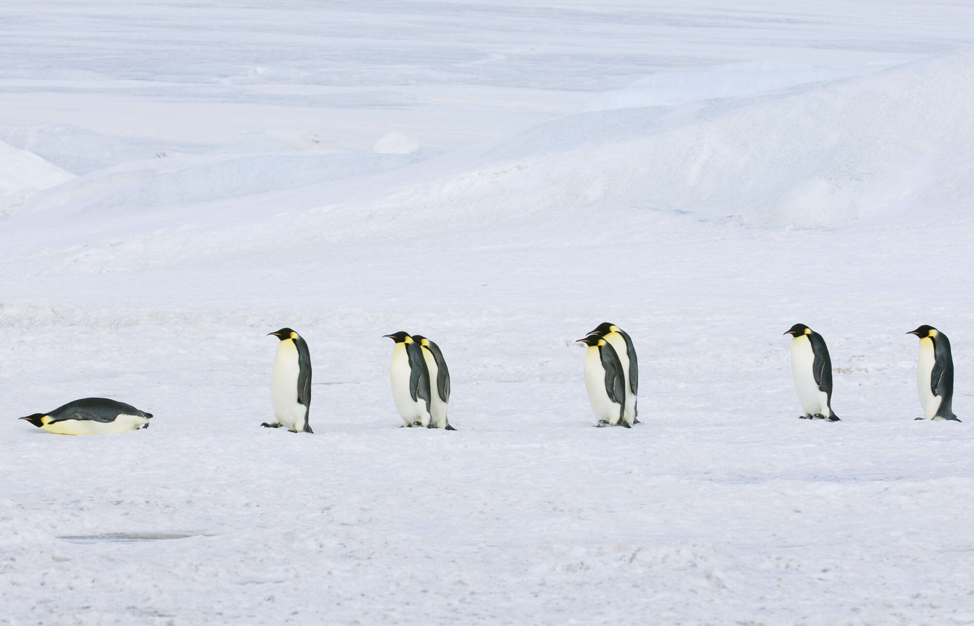 Les manchots empereurs se reproduisent sur la glace compacte que notre bateau ne peut et ne doit casser. C’est pourquoi nous utilisons des hélicoptères de 5 places pour vous emmener vers la colonie en débarquant sur la banquise. Si cependant la colonie était hors du rayon d’action de nos deux hélicoptères embarqués, nous serions alors amenés à changer notre programme, sans compensation financière possible.