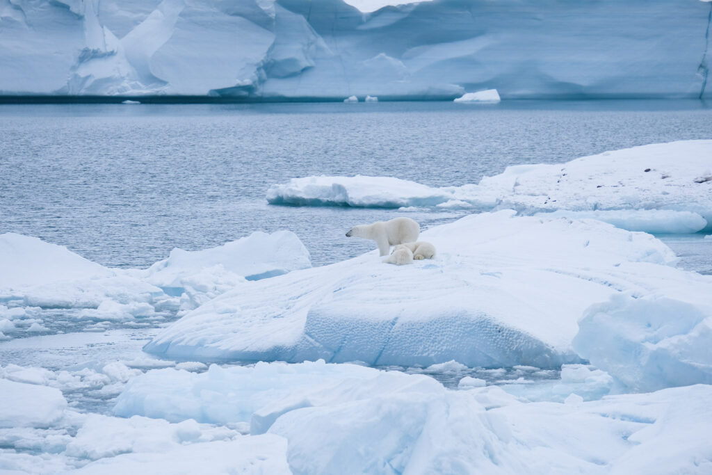 Dans ce paysage d’une pureté saisissante, où le silence semblait suspendre le temps, une ourse avait choisi de s’abandonner au repos. Allongée sur un iceberg dérivant, elle dormait paisiblement, ses deux oursons blottis contre elle.