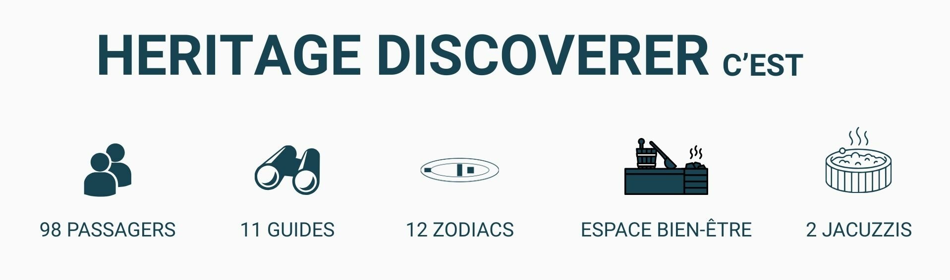 Fidèle à l’esprit de Grands Espaces, l’Heritage Discoverer accueillera à son bord seulement 98 passagers.