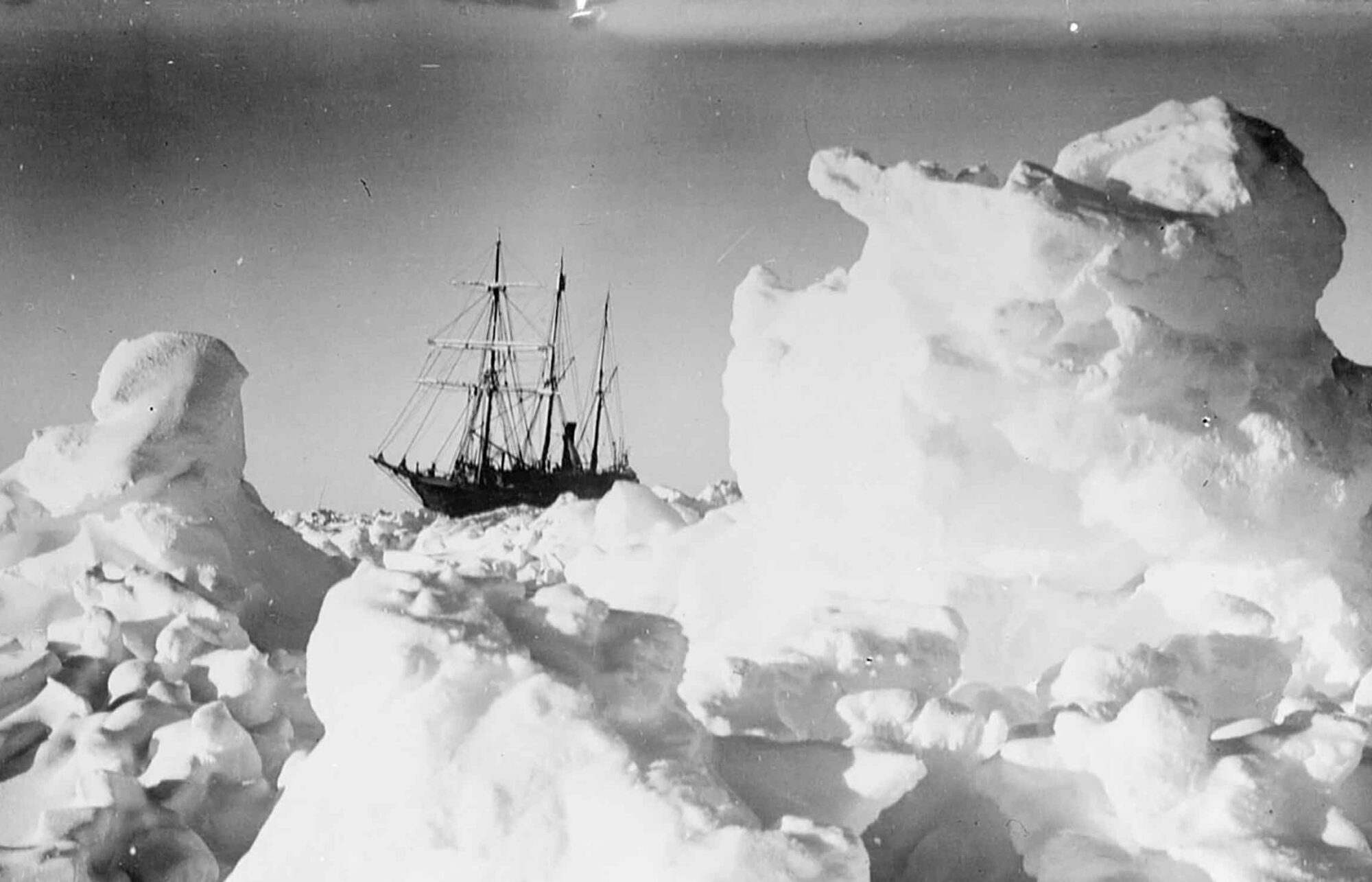 Pendant que le monde vit sa première guerre mondiale, Shackleton quitte l’Angleterre le 8 août 1914 et atteint la mer de Weddell début décembre. L’Endurance progresse dans la glace dans des conditions extrêmement difficiles et est vite immobilisé, pris par les glaces. Il hiverne quelques mois et pendant cette période le bateau dérive vers le Nord. Lorsque le dégel arrive, la glace se fractionne et la pression est telle que très vite, de l’eau s’infiltre dans la coque du navire qui doit être évacué. Sans autre issue possible, l’ordre est donné de quitter le navire, et tout est débarqué sur la glace avant que l’Endurance ne disparaisse dans les eaux glacées une année après le début de l’expédition, et 281 jours passés prisonniers de la glace.
